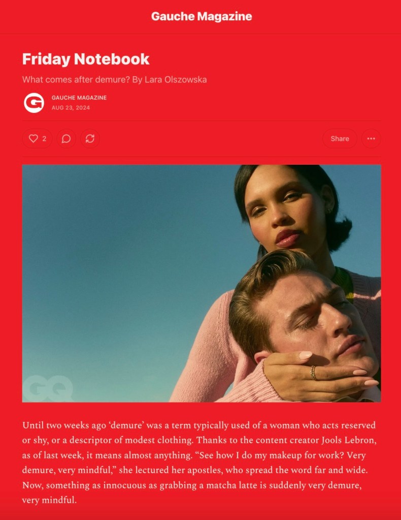 - What comes after demure? – GAUCHE