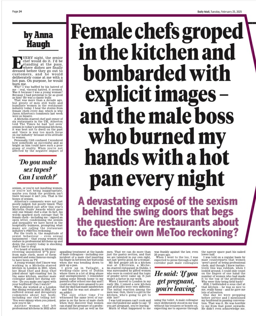 - MasterChef judge Anna Haugh’s devastating exposé of kitchen sexism – including female chefs groped and bombarded with explicit images – Daily Mail