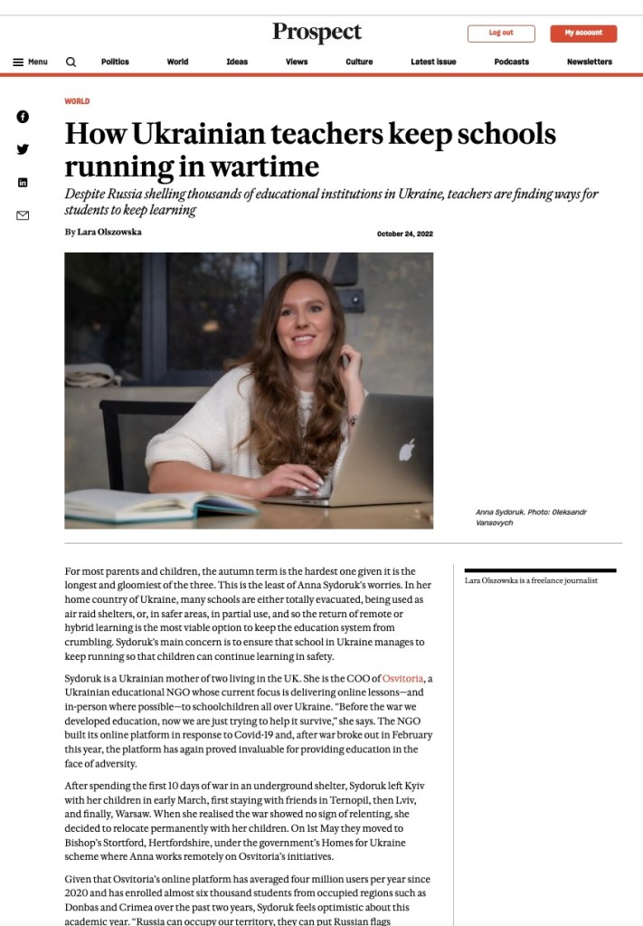 - How Ukrainian School Teachers Keep Schools Running in Wartime – Prospect