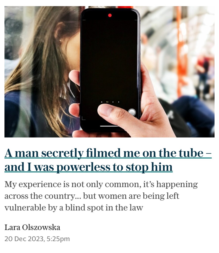 - A man secretly filmed me on the Tube – and I was powerless to stop him – Telegraph